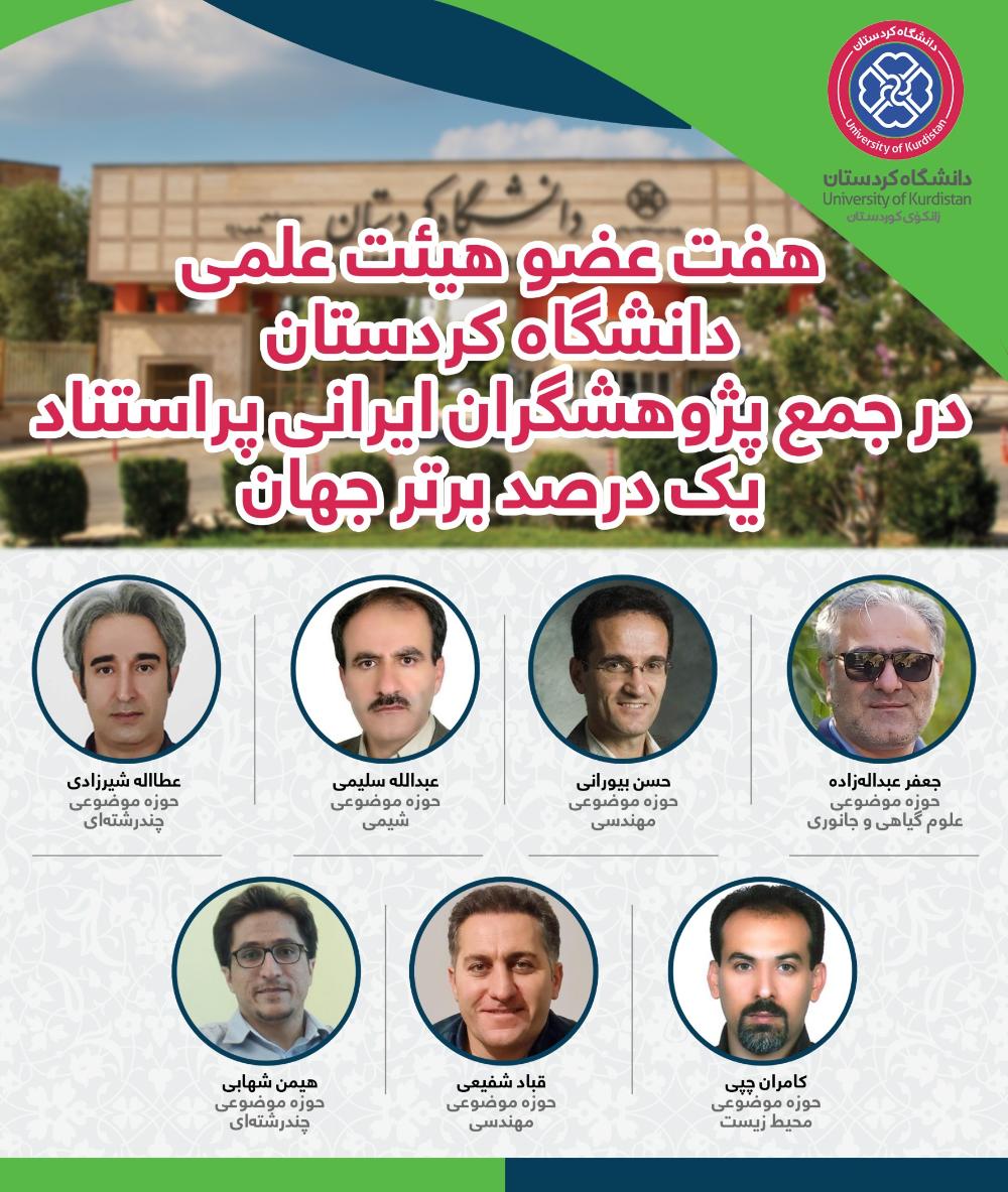 هفت عضو هیئت علمی دانشگاه کردستان در جمع پژوهشگران ایرانی پراستناد یک درصد برتر جهان