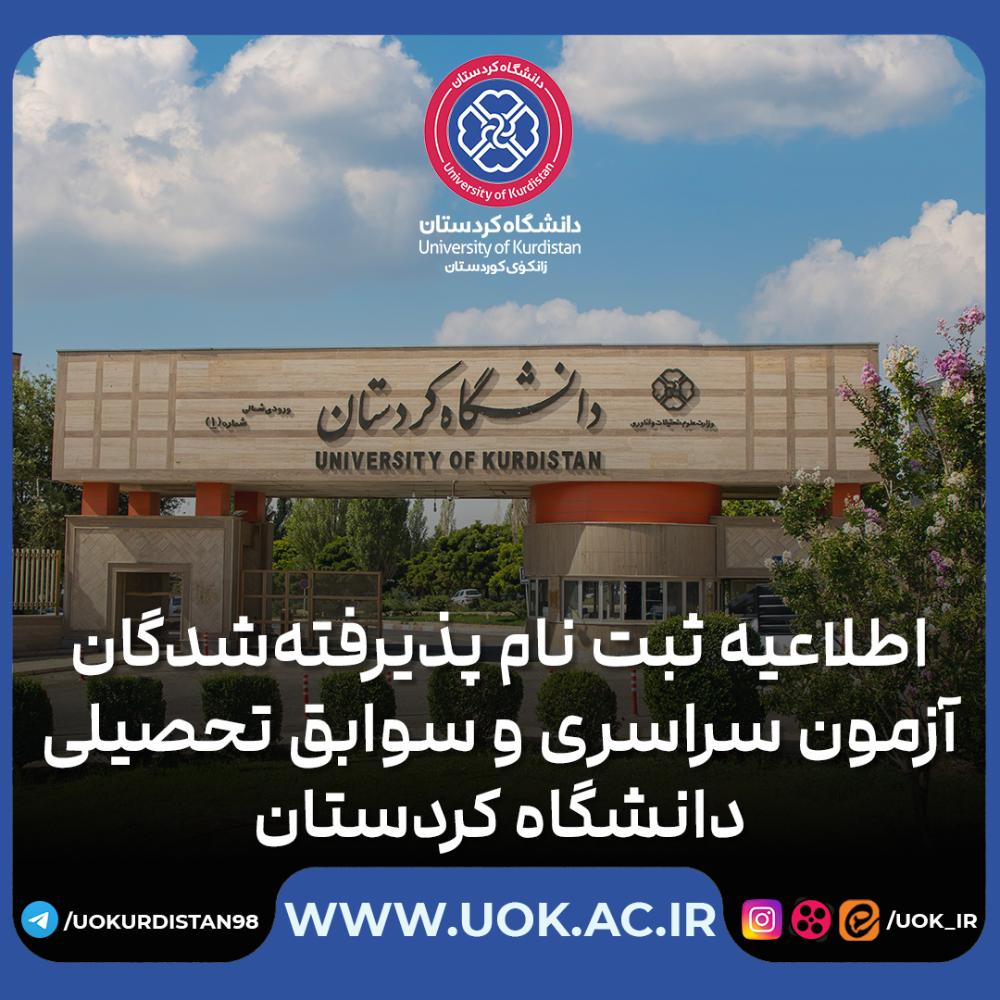 وێڕای پیرۆزبایی گەرم لە سەرجەم وەرگیراوانی قۆناغی کارناسیی ساڵی ١٤٠٤ی زانکۆی کوردستان، ئاگادارتان دەکەینەوە کە پرۆسەی ناونووسین لەم زانکۆیەدا بە شێوەی تەواوەتی نائامادەیی (ئۆنلاین) بەڕێوە دەچێت. تکایە، خۆتان لە هەر جۆرە سەردانێکی ئامادەیی بۆ زانکۆ بە مەبەستی ناونووسین بپارێزن.